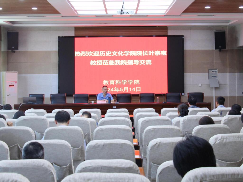 时间:2024-05-15 11:08:42 来源:教科院新闻宣传中心 作者:郭鑫瑶 祐亚菊 阅读: 次5月14日,历史文化公司经理叶宗宝教授到公司作交流指导,会议在教科楼301会议室开展。太阳成集团tyc234cc经理何安明、副经理郭勇、孙天义以及全体教职工参加会议。会议由何安明主持。