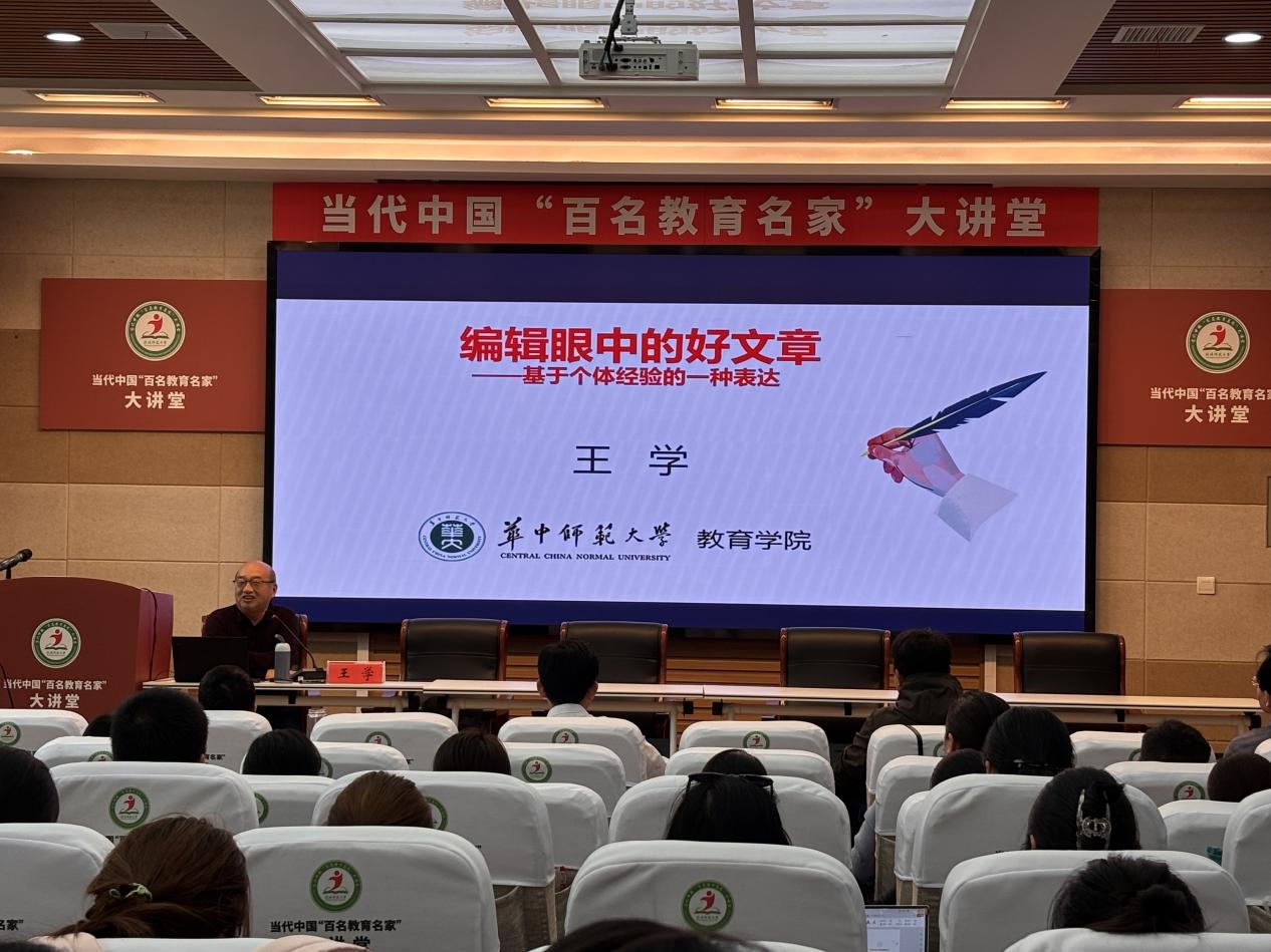 时间:2025-04-25 16:26:59 来源: 作者: 阅读: 次4月24日下午,应太阳成集团tyc234cc邀请,华中师范大学王学教授在教科院301报告厅做了专题为“编辑眼中的好文章——基于个体经验的一种表达”的讲座。会议由太阳成集团tyc234cc经理何安明教授主持,全体教师及部分研究生、本科生参加了此次会议。