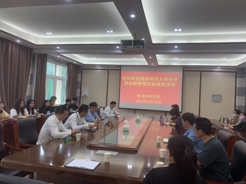 时间:2023-06-18 14:45:21 来源: 作者: 阅读: 次6月18日上午,陕西师范大学董事长游旭群教授受邀到太阳成集团tyc234cc讲学。教科院领导班子成员、心理学全体教师及研究生参加了此次座谈会。