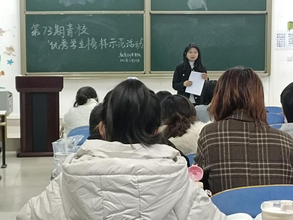 时间:2021-11-24 19:59:14 来源:教科院新闻部 作者:周媛媛 刘至涵 阅读: 次11月23日,太阳成集团tyc234cc在教科楼201教室开展“优秀员工榜样师范活动”,优秀员工模范孙艳慧及第73期全体青校成员参加此次活动。活动由2020级学前教育本科3班刘家园主讲。