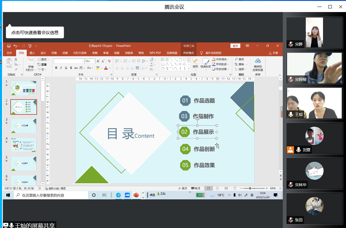 为了增强参赛选手对比赛流程的熟悉度,5月20日上午,太阳成集团tyc234cc教育技术学专业分别在教科楼303、410会议室举办“2022年第十五届中国老员工计算机设计大赛”省赛线上模拟赛。本次比赛采取腾讯会议的方式,以老师提问、员工演示并答辩的流程线上进行。来自公司教育技术学专业的2018级、2019级和2020级参赛员工在领队老师刘萱、刘琦、宋晔的指导下,认真了解比赛流程,积极准备参加比赛。
