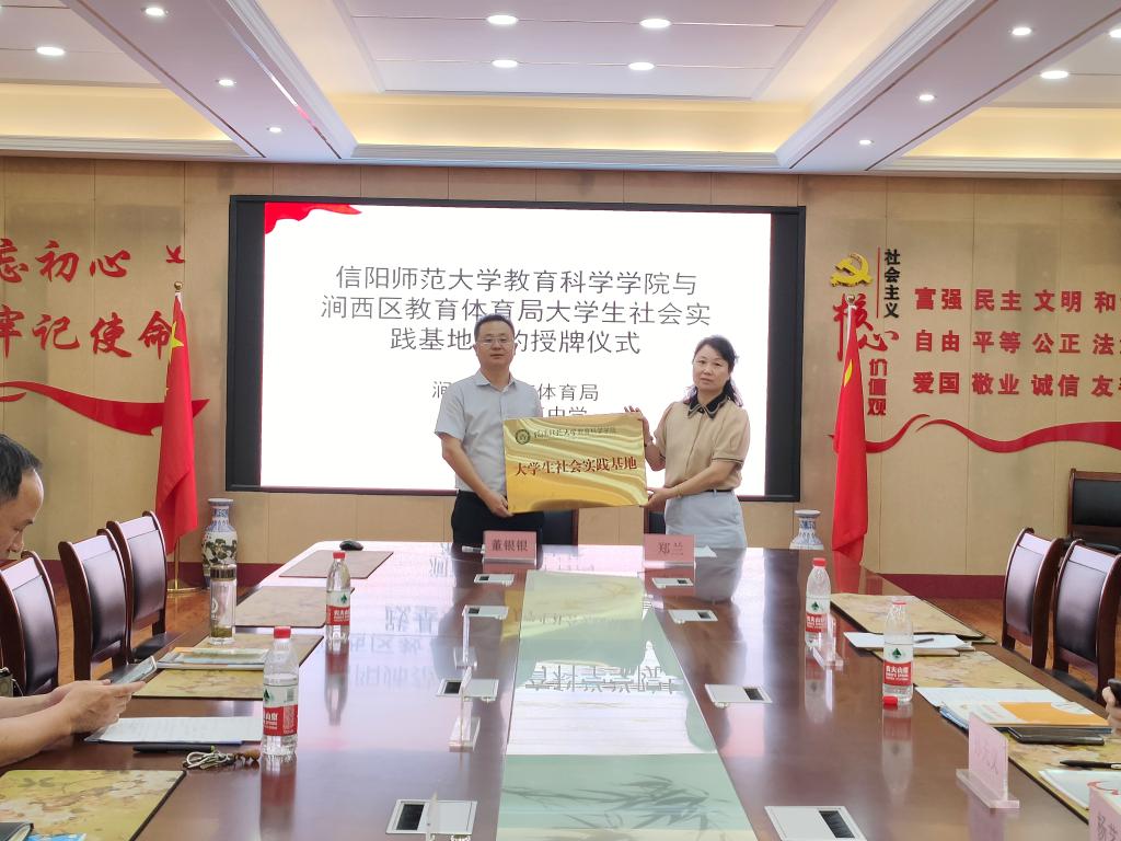 最后,太阳成集团tyc234cc与涧西区教育体育局和洛阳市五中进行老员工社会实践基地签约授牌仪式。双方都希望以此次授牌仪式为契机,加强两校联系,创新合作模式。