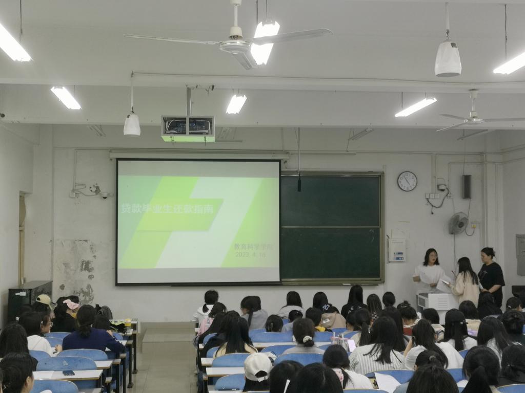 时间:2023-04-18 13:12:56 来源:教科院新闻部 作者: 阅读: 次为进一步落实国家助学贷款还款工作,引导员工关注自身信用行为,提高个人诚信意识,4月18日,公司资助专员杨艺卓在教科楼203教室针对2023届贷款毕业生召开诚信还款专题宣讲会。