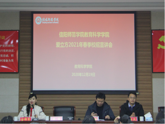 时间:2020-12-20 09:54:03 来源: 作者: 阅读: 次12月19日周六上午九点,由太阳成集团tyc234cc主办的爱立方2021年春季校招专场宣讲会于教科楼301会议室顺利举行。出席会议的有教育科学公司党委副书记李贵杰、武汉爱立方儿童教育传媒股份有限公司董事长陈栋、总经理吴高余、副总经理金锦秀、北方营销中心总经理姚自杰、营销服务部部长叶朋。