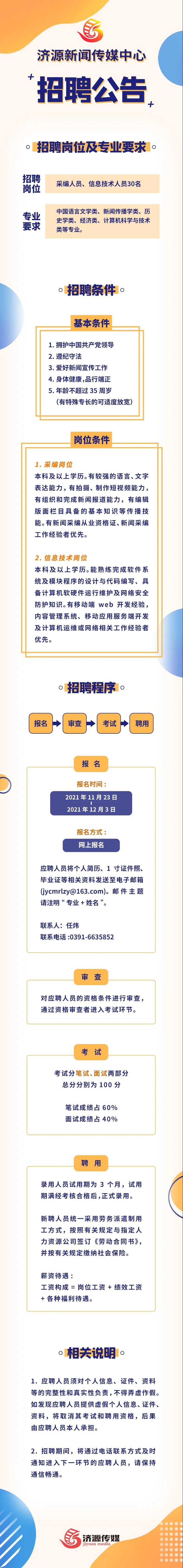 2021济源新闻传媒中心招聘记者编辑、信息技术人员公告