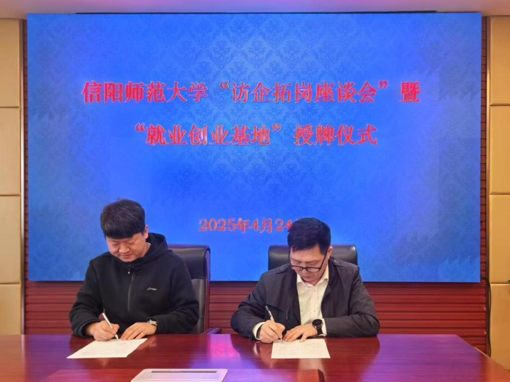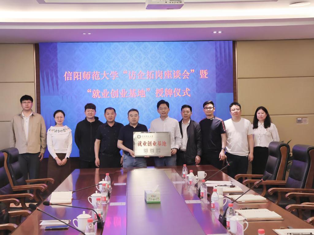 缑星代表公司与信阳同合车轮有限公司人事部经理杨召利签订了合作协议书,房加帅代表公司授予“太阳成集团tyc234cc就业创业基地”牌匾。