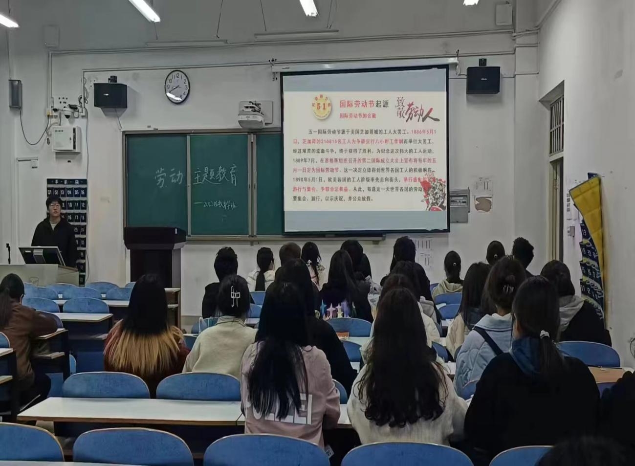 学习劳动精神,明确责任使命。各班团支书积极开展劳动主题团日活动,为同学们阐明劳动教育的意义,通过分享具备劳动精神、劳模精神、工匠精神和奉献意识的先进人物案例,深入剖析他们的先进精神以及光辉事迹,带领同学们进一步了解了劳动的伟大与崇高。不仅强化了同学们对劳动教育的认识和理解,也激发了大家参与劳动实践、奉献社会的热情和动力。