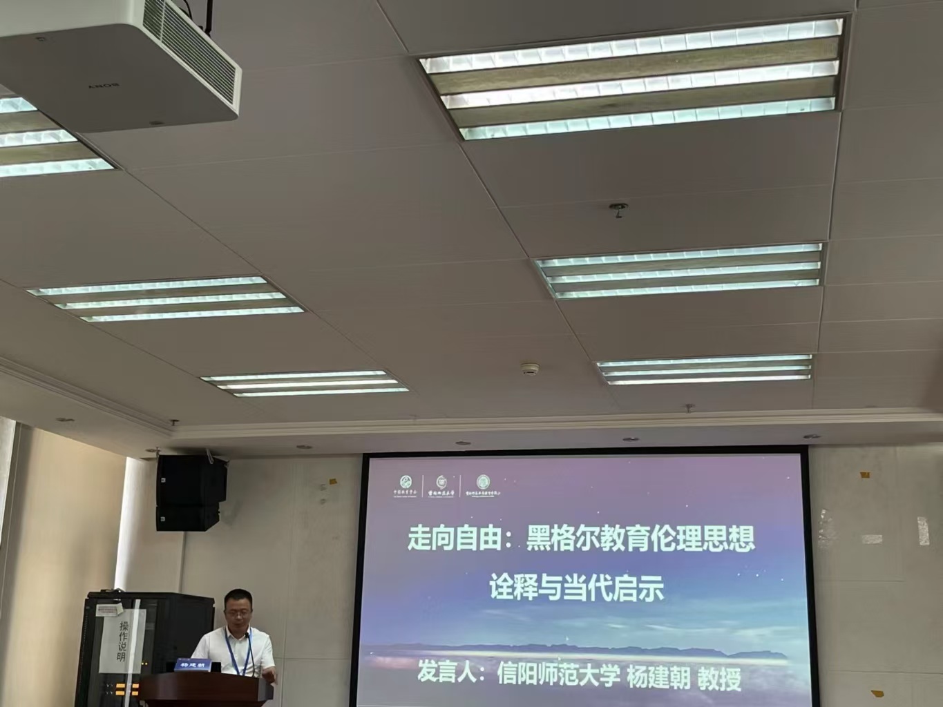 公司杨建朝教授应邀在上午的大会做主题发言,发言题目是《走向自由:黑格尔教育伦理思想诠释与当代启示》,认为黑格尔的法哲学中包含深刻丰富的以自由为核心的教育伦理思想,其观点对当代日益式微的教育伦理精神的重建有重要启示。下午的第四分论坛上,杨建朝作为论文回应人,对部分青年教师和博士生汇报的学术论文做了精彩点评。