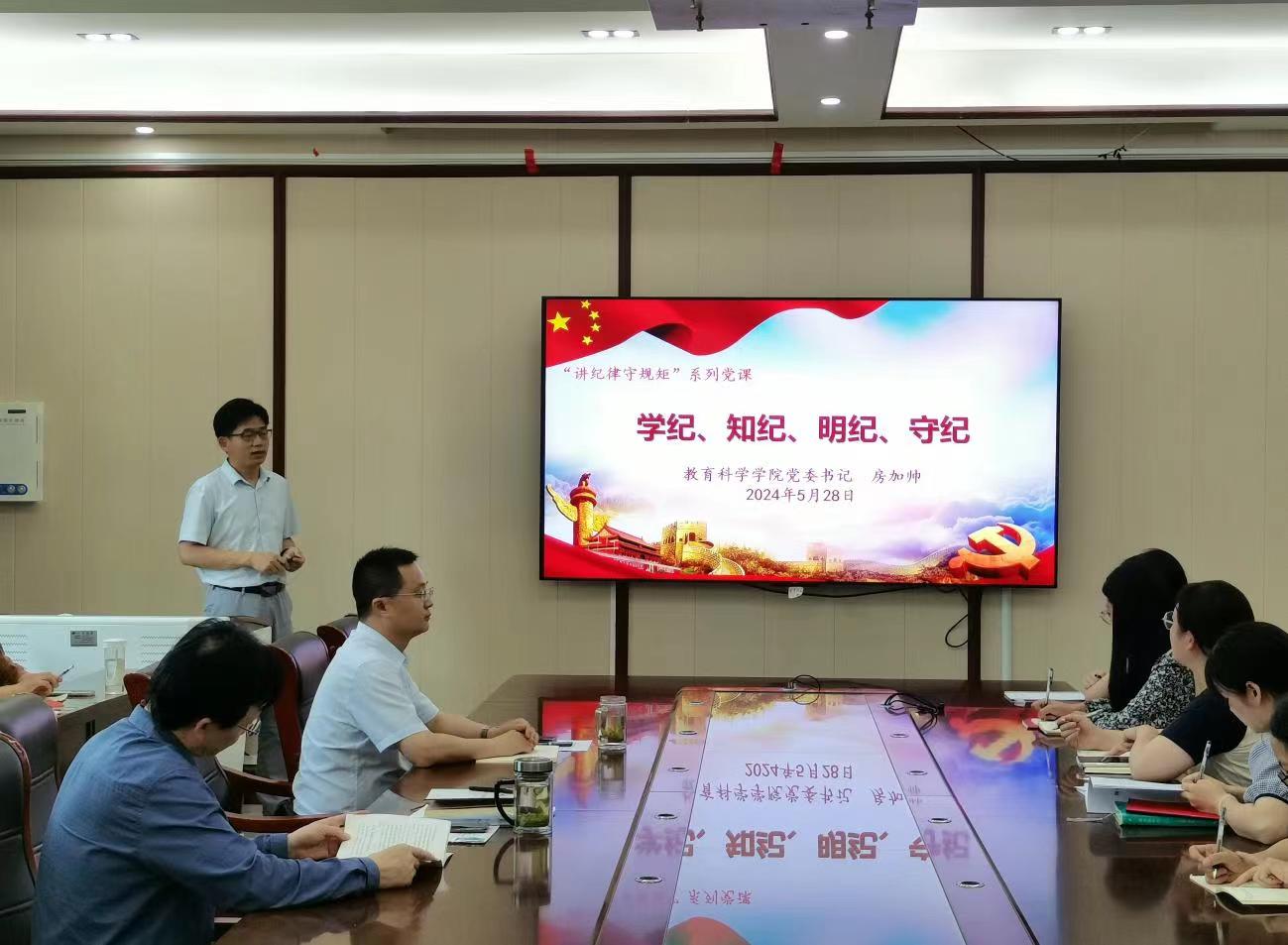 时间:2024-05-30 11:57:15 来源:教科院新闻宣传中心 作者:荆媛媛 吴皓 阅读: 次为深入贯彻学习习近平新时代中国特色社会主义思想和党的二十大精神,进一步加强党的纪律教育,强化公司师生的纪律意识、规矩意识。5月14日-5月28日,教育科学公司党委领导班子为师生开展“讲纪律守规矩”系列党课。