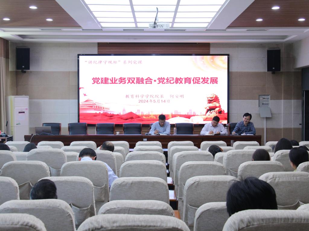 太阳成集团tyc234cc经理何安明以《党建业务双融合·党纪教育促发展》为题,讲授专题党课。他提出,党的纪律建设是确保党的事业长久发展的根本保证,要将党建贯穿于学科专业发展与团队队伍发展,应注重将党纪学习教育与师德师风建设有机结合起来,以党的科学理论武装青年,努力为师生创造良好的科研氛围和发展条件,引导青年加强科学研究,确保教学不落后,实现教学与科研双向促进。