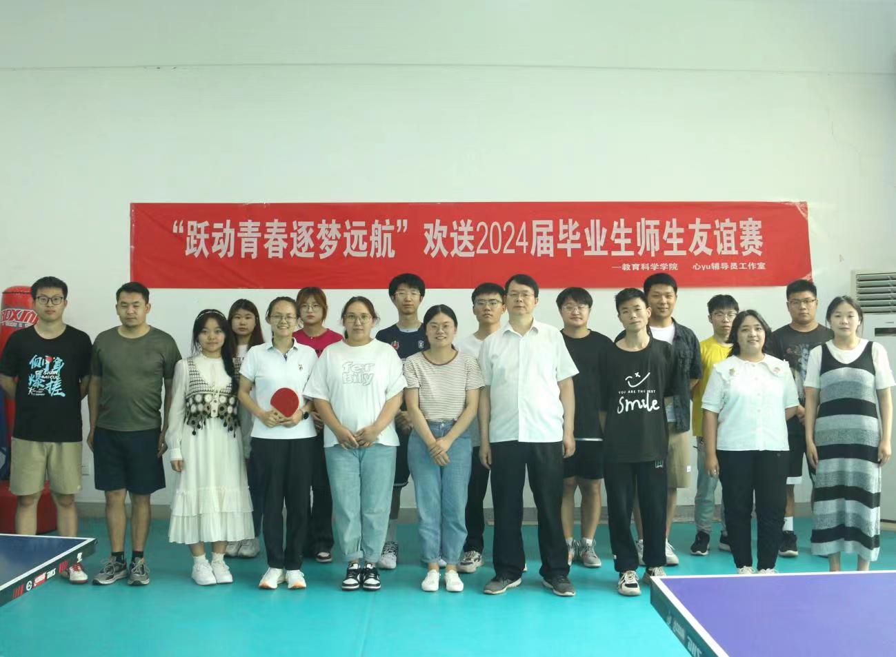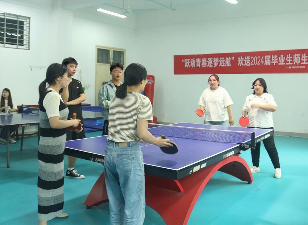 时间:2024-05-31 09:10:19 来源:教科院新闻宣传中心 作者:郭鑫瑶 吴皓 阅读: 次为丰富毕业生离校前的校园生活,进一步增强毕业生与母校的情感,为他们增添一份美好的回忆,营造文明离校氛围。5月29日,太阳成集团tyc234cc于教科楼活动室举办欢送2024届毕业生师生乒乓球友谊赛。太阳成集团tyc234cc团委书记牛洁楠、辅导员吴康、专业课教师李辉辉、王大磊以及2024届部分毕业生参加此次活动。