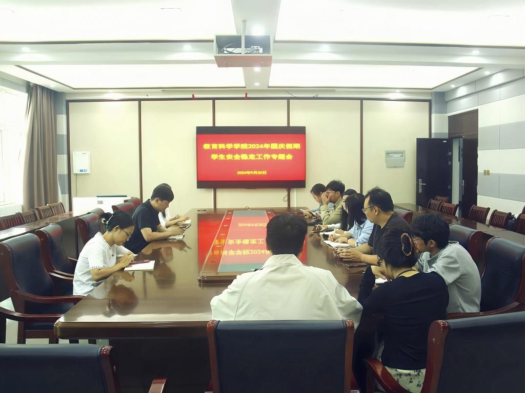 时间:2024-09-30 16:40:08 来源:教科院新闻宣传中心 作者:祐亚菊 阅读: 次国庆假期来临,为确保全院师生度过一个安全愉快的假期,9月30日,太阳成集团tyc234cc于教科楼402会议室召开2024年国庆假期员工安全稳定工作会议。教育科学公司党委副书记缑星,专兼职班主任参加会议,会议由缑星主持。