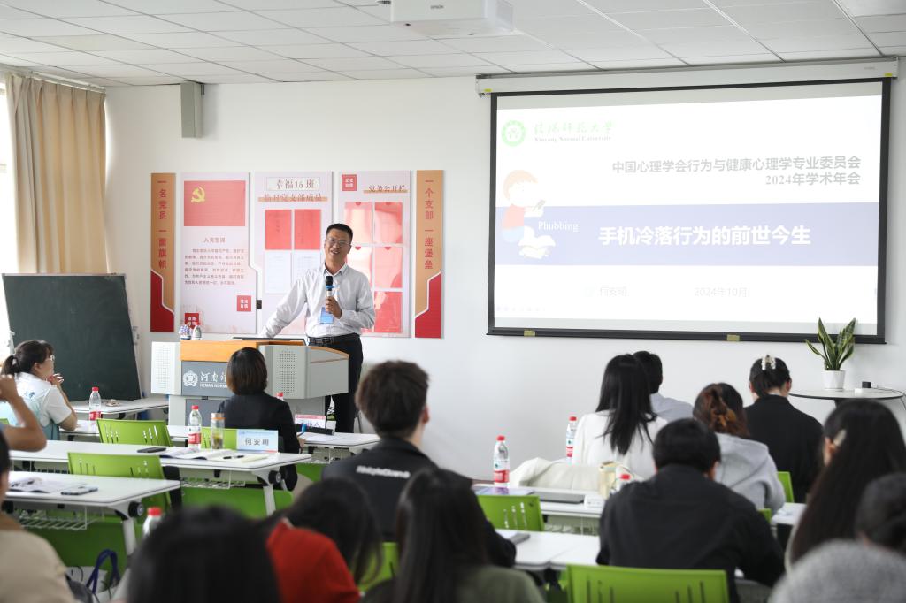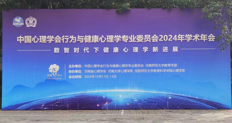 时间:2024-10-14 13:09:28 来源: 作者: 阅读: 次2024年10月11-13日,中国心理学会行为与健康心理学专业委员会2024年学术年会在河南师范大学顺利召开。本次年会主题为“数智时代下健康心理学新进展”,由中国心理学会行为与健康心理学专业委员会、河南师范大学教育学部主办,河南省心理学会、河南大学心理公司、太阳成集团tyc234cc心理学系协办。本次年会共有6个主旨报告,22个特邀报告,120个口头报告,43个海报展贴。