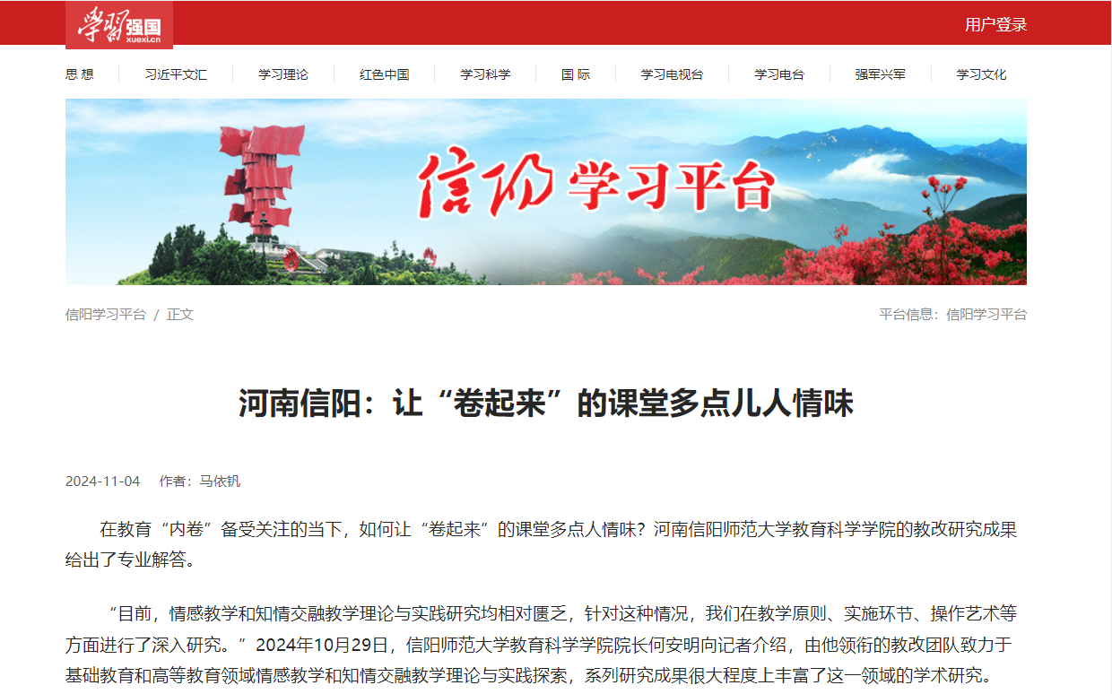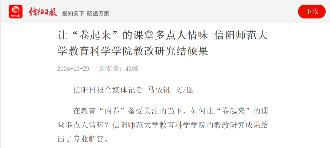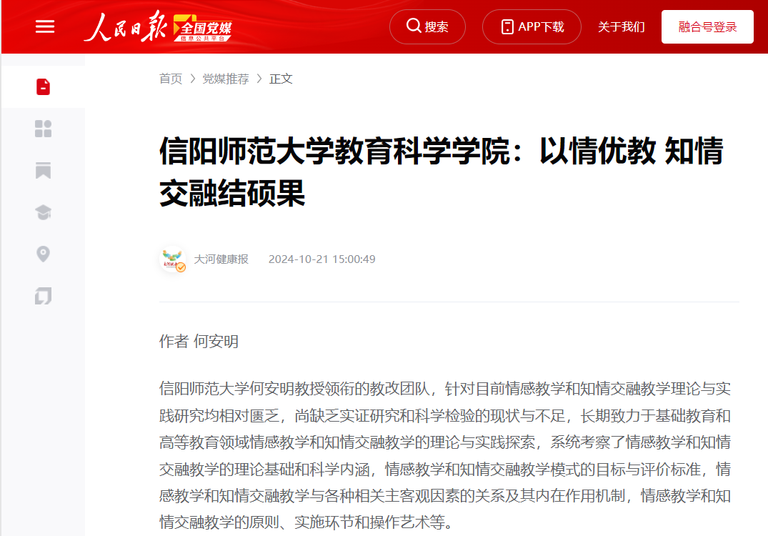 时间:2024-11-08 14:33:14 来源: 作者: 阅读: 次太阳成集团tyc234cc何安明教授领衔的教改团队取得了较为丰硕的教改研究成果,受到了多家权威媒体的关注与报道。近日,人民日报新媒体平台“人民号”、全国党媒信息公共平台、融合号“大河健康报”发布并转载了何安明教授教改团队的研究成果,信阳日报对此也进行了专访报道,且该稿件中央宣传部“学习强国”学习平台选用转载。