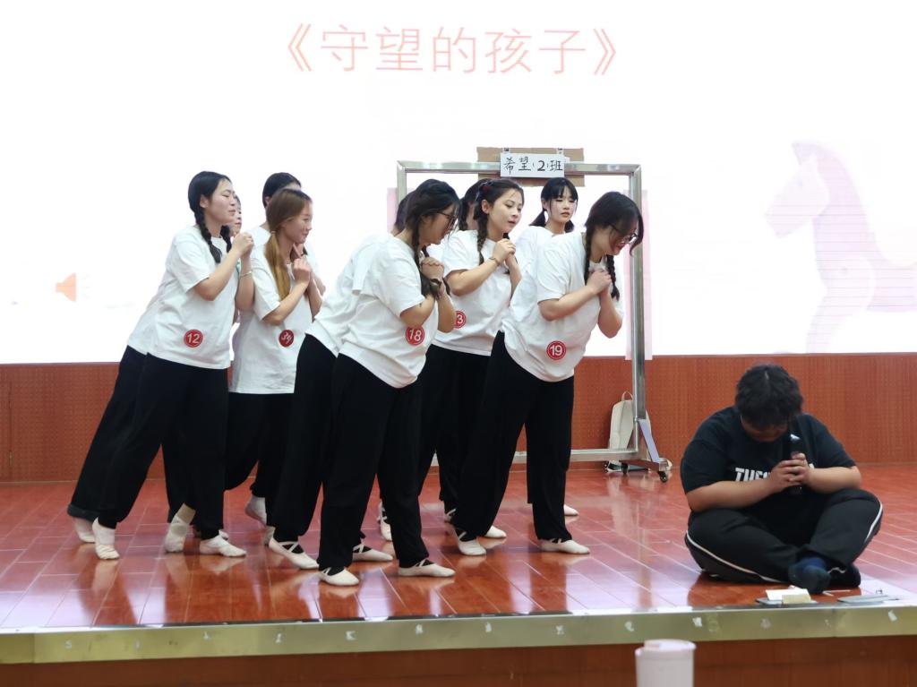本次大赛同学们以独特的视角和丰富的想象力为儿童舞蹈注入了新活力。比赛前同学们反复排练每一个动作,现场弥漫着紧张而又充满期待的氛围。比赛开始,一支支精心编创的舞蹈作品依次登场,如其中的《守望的孩子》用优美的舞姿诉说着孩子们的期盼和思念,让观众们在欣赏舞蹈的同时能够深刻地体会到孩子内心深处的那份纯真和渴望;以儿歌《卖报歌》为灵感创作的舞蹈,生动地展现出报童在旧时代的勤劳与勇敢,舞者们通过细腻的动作和丰富的表情,仿佛将观众带回那个充满故事的年代,让人们深切感受到报童们生活的艰辛与不屈的精神;而充满童趣的《小老鼠偷灯油》,通过活泼俏皮的舞蹈动作将小老鼠的机灵形象展现的惟妙惟肖。舞者们欢快的脚步和灵动的眼神,为整个舞台增添了无限生机和动力。