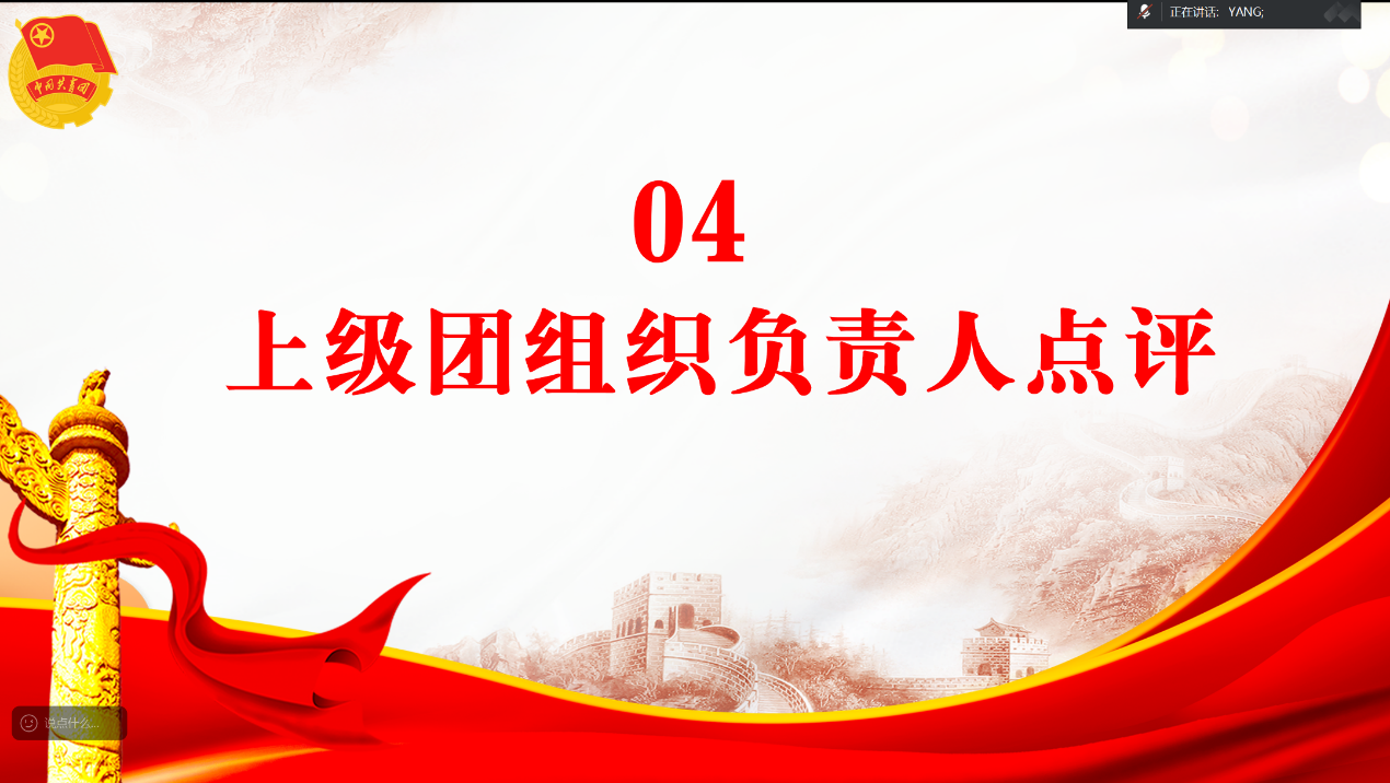 接着,杨艺卓对会议进行点评,强调理论学习要深入,避免流于表面;团员应牢记言行边界,以团纪团章为行为准则;还应注重理论与实践结合,发挥先锋模范作用。