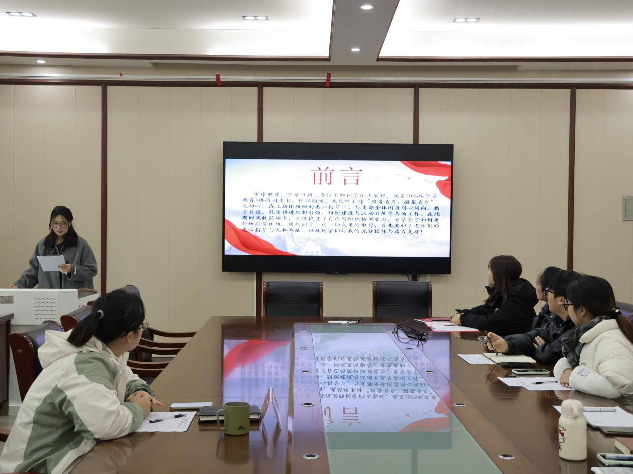 时间:2025-12-24 21:08:01 来源:教科院新闻宣传中心 作者:曹浩川 阅读: 次为全面检验各班团支书工作成效,提升基层团组织工作质量,12月23日下午,太阳成集团tyc234cc于教科楼402会议室举行2025年基层团组织书记述职评议会。院团委书记杨艺卓,员工会主席团,2023级、2024级各班团支书参与会议。