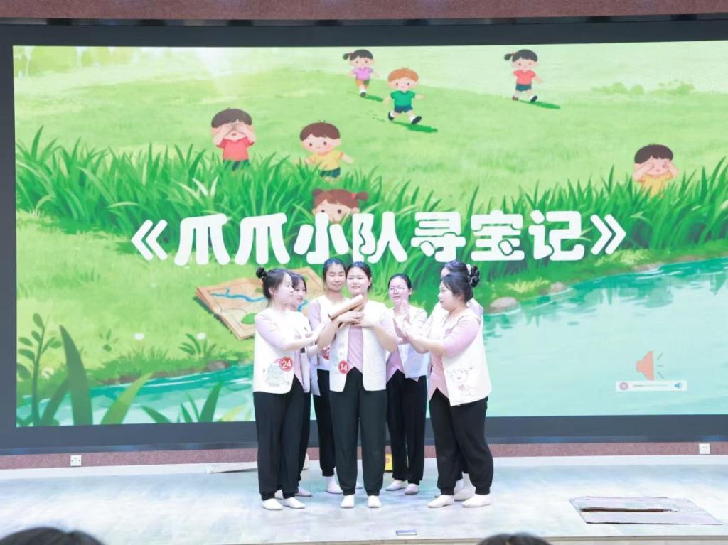 比赛中,同学们紧扣幼儿身心发展规律,以儿童视角为出发点,将艺术创意与教育意义深度融合。其中,《牙牙乐成长记》通过拟人化编排展现牙齿生长过程,简单易学的动作、明快活泼的节奏完美适配幼儿肢体特点,传递健康生活理念;而《保卫小树苗》以情景化叙事为核心,老员工编创者巧妙设计守护绿植的舞蹈情节,让孩子们在表演中理解环保意义;此外,《咩咩历险记》则凭借可爱的动物角色扮演、趣味十足的冒险剧情,搭配贴合幼儿认知的动作设计,赢得现场阵阵掌声。与此同时,《不做低头小宝贝》《不准吃那个苹果!》等作品,分别围绕健康用机、安全常识等主题展开,既保留童真童趣,又暗藏教育巧思。