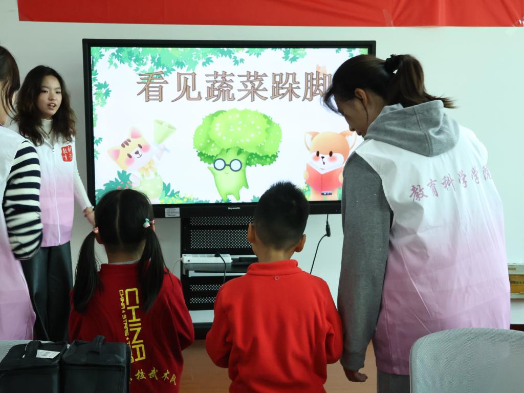 课堂伊始,志愿者们带领小朋友们开展“水果蔬菜碰碰碰”热身游戏,在生动的幻灯片引导下,孩子们看见蔬菜便跺脚、看见水果就拍手,在趣味互动中锻炼手眼协调能力与反应力,快速融入活动氛围。随后,在志愿者的耐心引导下,孩子们通过“情绪九宫格”绘画,将内心潜藏的情绪具象化,让情绪背后的需求得以直观呈现。