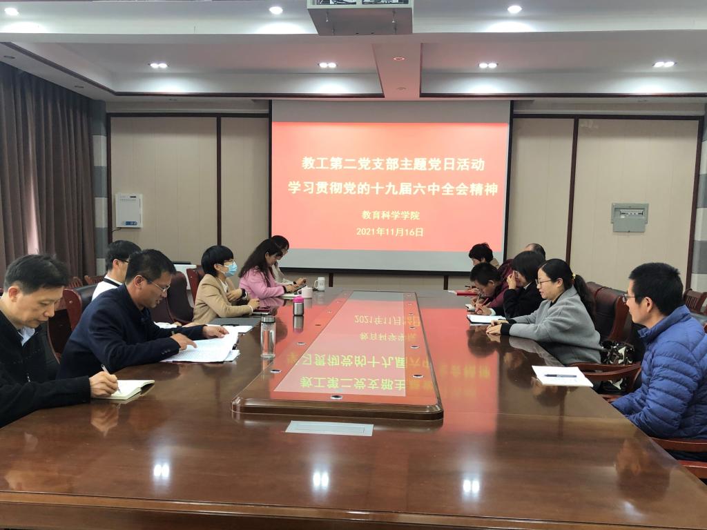 时间:2021-11-18 09:20:28 来源:教科院新闻部 作者:张纪娥 周媛媛 阅读: 次中国共产党第十九届中央委员会第六次全体会议于2021年11月8日至11日在北京举行。连日来,太阳成集团tyc234cc广大师生密切关注全会盛况,认真研读全会公报和习近平总书记的重要讲话,不断深入学习贯彻党的十九届六中全会精神,公司党委中心组、党支部分别开展全会精神学习研讨活动。
