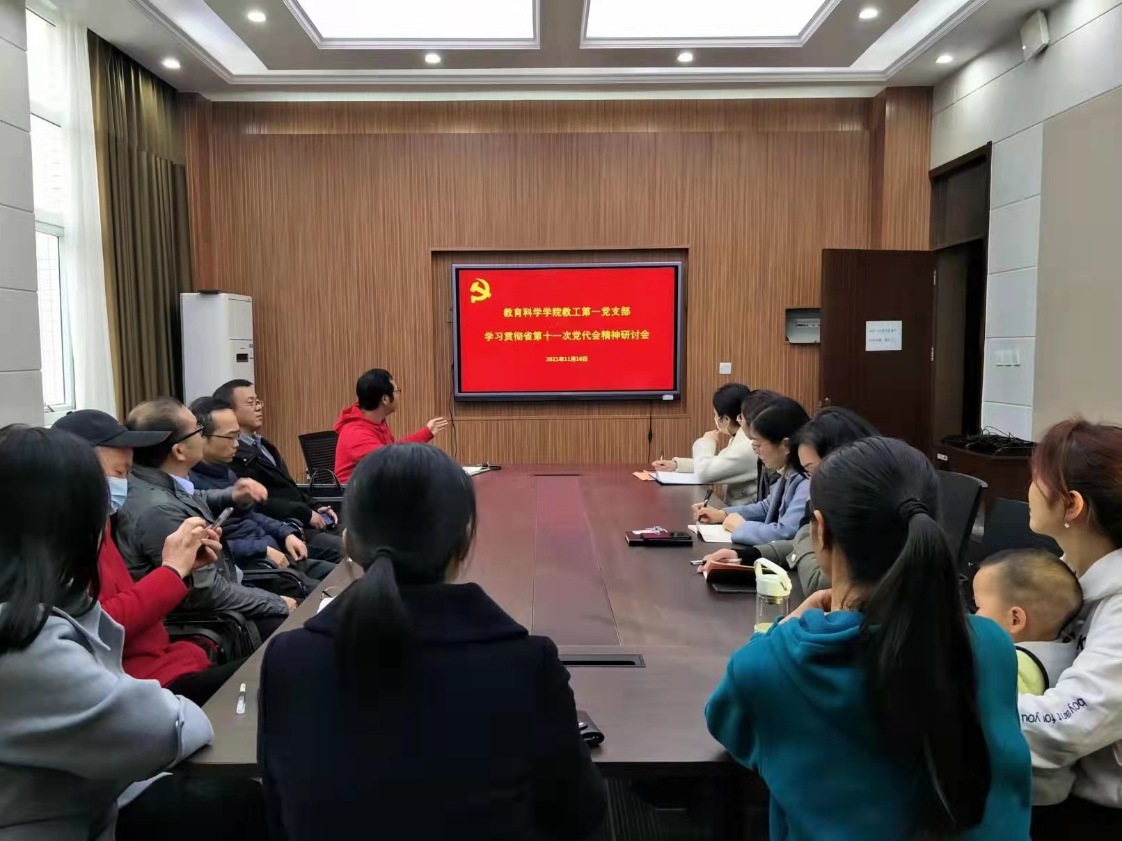 支部集中学。11月16日,教科院九个党支部分别召开了学习研讨会议。会上,各支部传达学习了省第十一次党代会上楼阳生书记所作的《高举伟大旗帜,牢记领袖嘱托,为确保高质量建设现代化河南、确保高水平实现现代化河南而努力奋斗》的报告,深刻领会会议精神,认真讨论,积极发言,并为河南省过去五年取得的重大成就而振奋,为现代化河南建设的前景充满希望。大家纷纷表示要切实把思想和行动统一到省第十一次党代会精神上来,勇于担当、不负使命,奋力开拓公司事业发展的新局面。