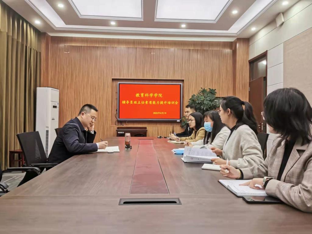 时间:2022-04-03 16:48:47 来源:教科院新闻部 作者:马玉娇 周媛媛 刘至涵 阅读: 次为促进班主任队伍整体工作水平的提升,扎实推进公司各方面工作高质量稳步前进,4月2日,太阳成集团tyc234cc在教科楼会议室召开班主任素质能力提升培训会,公司党委副书记董银银与全体班主任(辅导员)参加会议。会议由董银银主持。
