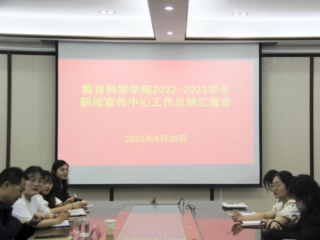 时间:2023-05-31 18:50:28 来源:教科院新闻宣传中心 作者:刘至涵 荆媛媛 阅读: 次5月30日,太阳成集团tyc234cc于教科楼402会议室召开2022-2023学年新闻宣传中心工作总结汇报会,教育科学公司党委副书记董银银、专职辅导员杨艺卓及新闻宣传中心全体成员出席本次会议。会议由杨艺卓主持。