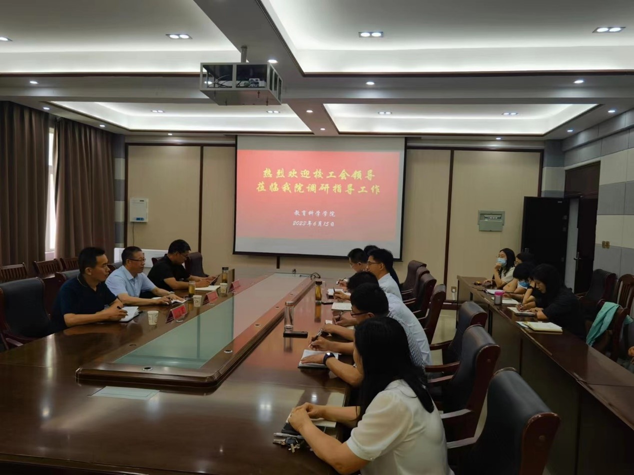 时间:2023-06-16 11:54:22 来源:教科院新闻宣传中心 作者:刘至涵 罗梦瑶 阅读: 次6月15日上午,信阳师范公司工会副主席张起军,工会办公室主任李孝民一行到访公司开展调研指导工作,教育科学公司党委书记房加帅,经理何安明,党委副书记董银银,副经理郭勇,工会会员和教师代表参加会议。会议于教科楼402会议室召开。