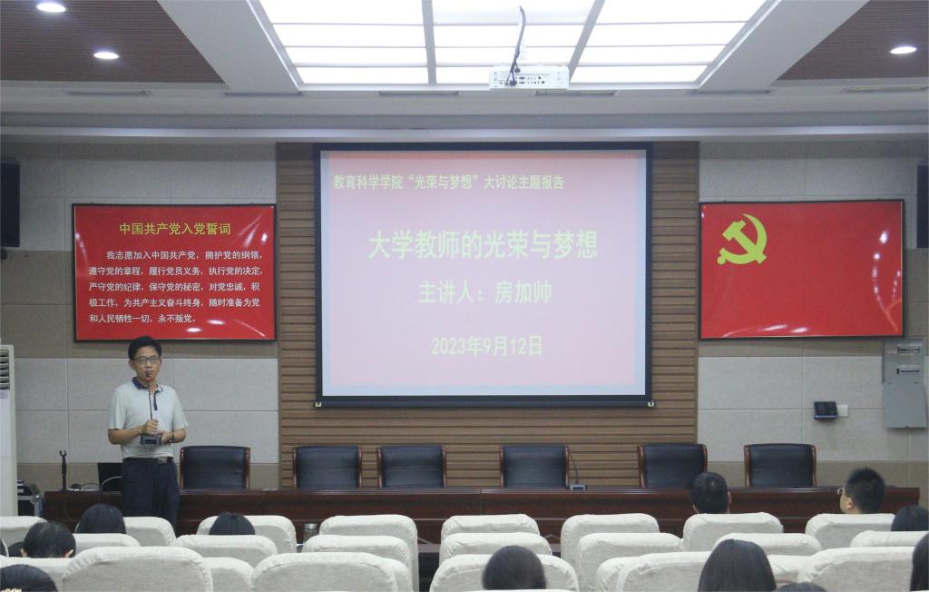 开展专题党课。9月12日,教育科学公司党委书记房加帅以《大学教师的光荣与梦想》为题给公司全体教职工作专题辅导报告。报告会上,房加帅结合公司教师业务发展实际,从“光荣源自梦想”、“光荣需要梦想”、“光荣催生新的梦想”、“架起光荣与梦想的桥梁”四个方面分析了更名前后老师的工作使命与责任担当,激励老师们把个人追求融入公司发展的洪流中,勇于追梦,实现更大的发展。