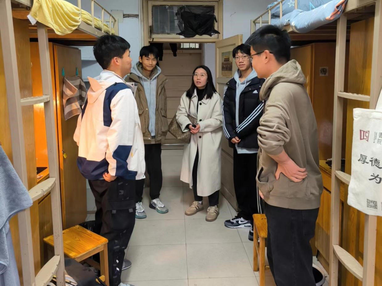 在走访宿舍过程中,各位老师与同学们进行亲切的交流,了解同学们在校生活情况,提醒同学们注意天气变化、规律作息、适当运动,养成积极向上的心态;同时,各位老师对宿舍卫生和安全隐患进行了排查,强调了用电安全,督促同学们爱护宿舍环境,妥善保管贵重物品,注意人身财产安全。