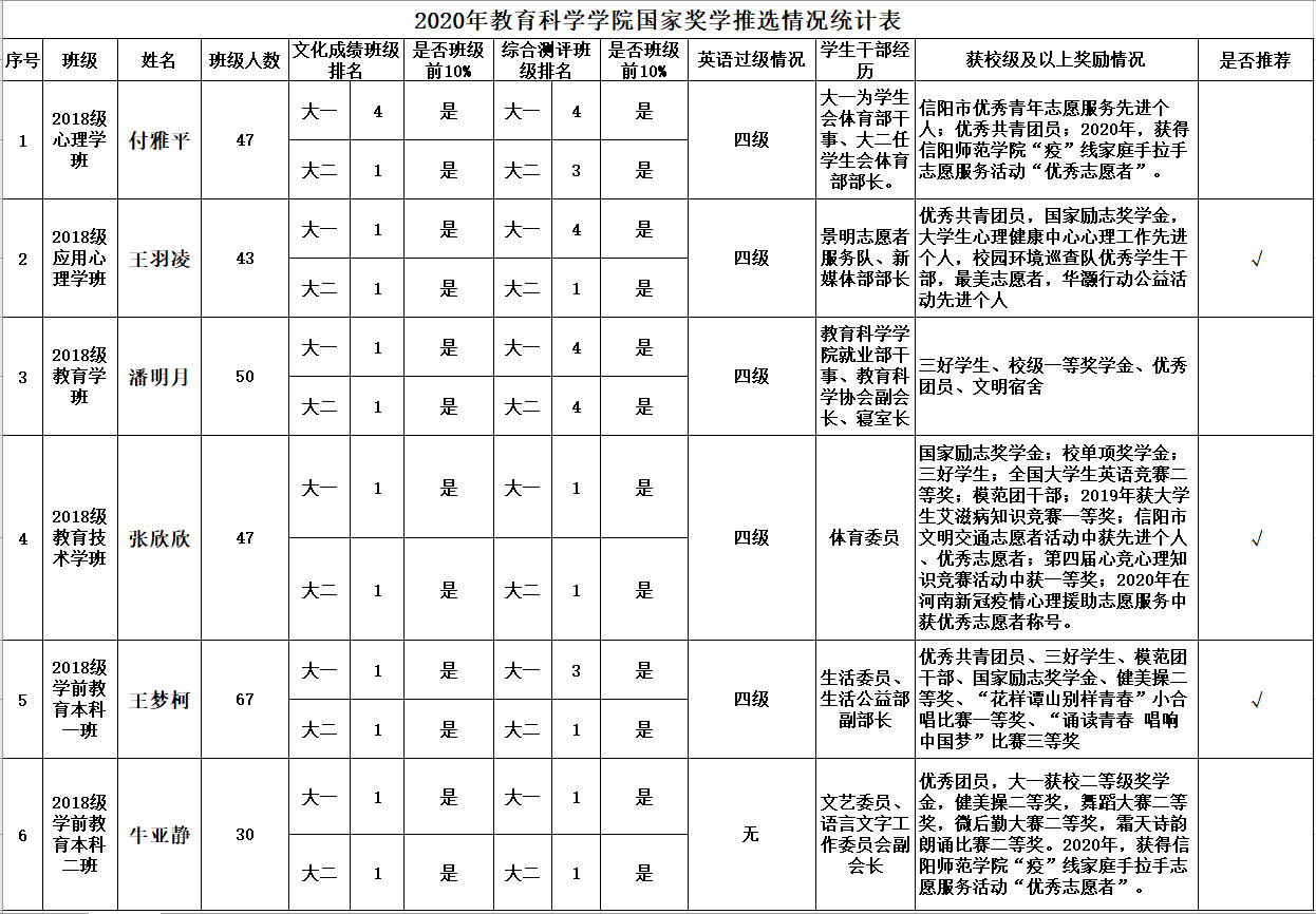 太阳成集团tyc234cc2020年国家奖学金名单公示