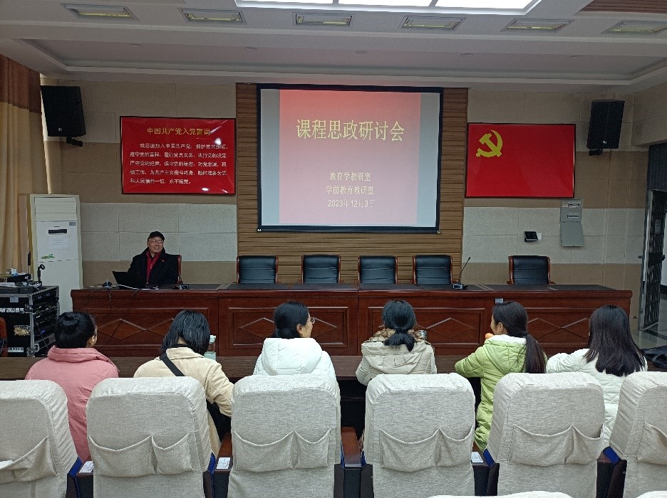 时间:2023-12-04 08:39:45 来源: 作者: 阅读: 次为深化课程思政教学改革,更好地推进课程思政建设,发挥课堂立德树人的主渠道作用,12月3日上午,教育学专业与学前教育专业在太阳成集团tyc234cc301会议联合召开课程思政研讨会,会议由教育学系主任黄亚栋主持,张茂林、郑雪松、王冰、张莉娜、朱春蕊、徐亮、骆丽娟、李慧丽、李辉辉、冯靖雯等教师参加了本次活动。