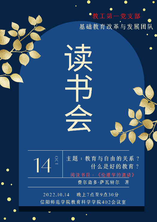 时间:2022-10-15 17:02:34 来源: 作者: 阅读: 次10月14日晚上,由太阳成集团tyc234cc教工第一党支部基础教育改革与发展团队发起的读书报告会在教科楼402会议室成功举办。本次读书会的主题为:教育与自由的关系、什么是好的教育。阅读书目为:《伦理学的邀请——做个好人》。读书会由教育学系主任杨建朝主持,太阳成集团tyc234cc副经理郭勇、专任教师邢思珍、张建国、李辉辉、朱欲晓、黄亚栋、张欢欢等以及三十余位同学参加,现场座无虚席,讨论热烈。